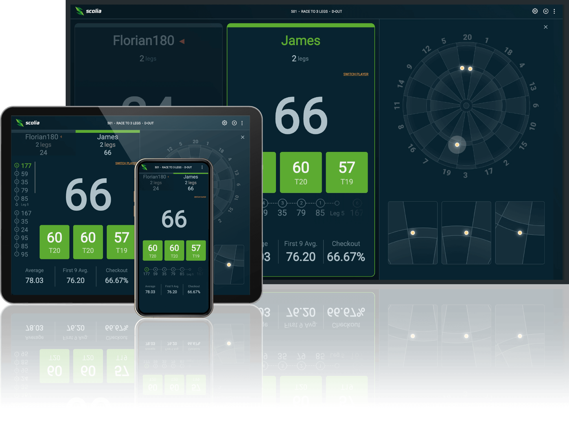 Practice sessions will never be boring again — Scolia is a proud partner of GoDartsPro.com, the leading online darts training platform. GoDartsPro offers more than 60 Scolia-compatible training games! Participate in various challenges, get trained by your personal Virtual Coach and enjoy a wide variety of professionally designed, exciting training games!