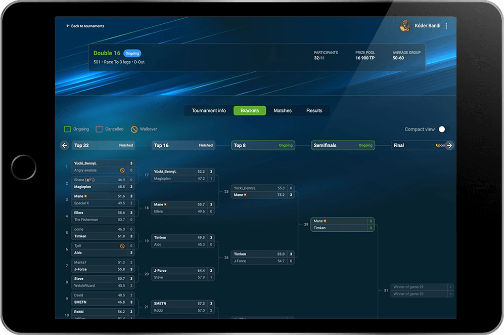 The Scolia tournament platform also allows organisers to create their own private online or local tournaments for up to 128 participants. You can customise your tournament as you want and add your own prizes. This feature is particularly useful for darts clubs, but any group of friends can also benefit from it if they want to organise their own competition.